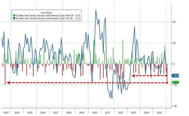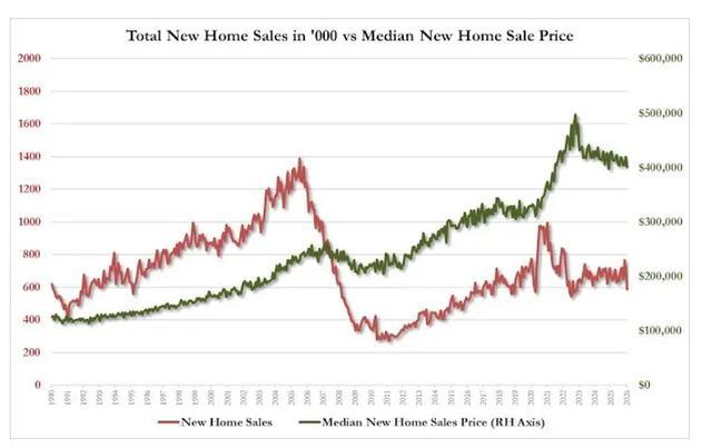 凭证好意思国政府周四公布的数据,新建一家庭住宅销量较12月下降17.6%,创下2013年7月以来的最大环比跌幅,远超预期的环比下落2.7%,折合年率为58.7万套,创2022年以来最低。该数据低于媒体对经济学家的整个看望预期。