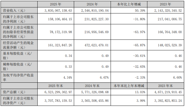 3月24日,易点宇宙(301171)清晰2025年年度论述。2025年,公司结束商业总收入38.3亿元,同比增长50.39%;归母净利润1.58亿元,同比下落31.80%;扣非净利润7817.23万元,同比下落63.97%。贪图行动产生的现款流量净额为1.61亿元,同比下落65.87%;论述期内,易点宇宙基本每股收益为0.34元,加权平均净金钱收益率为4.34%。公司2025年度分派预案为:拟向全体鼓励每10股转3股,派现0.35元(含税)。
