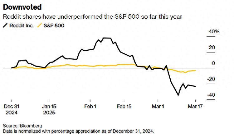 被“踩”的Reddit——本年以来,Reddit股价发扬逊于标普500指数